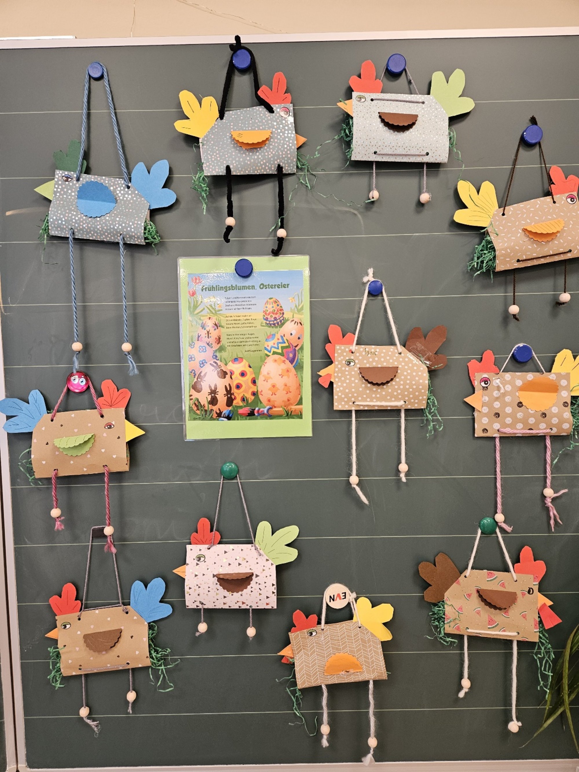 Die Kinder der 3. Schulstufe gestalten mit viel Begeisterung liebevoll verzierte Papierhühner, die nicht nur befüllt, sondern auch aufgehängt werden können. Dabei entstehen viele bunte und individuelle Kunstwerke.